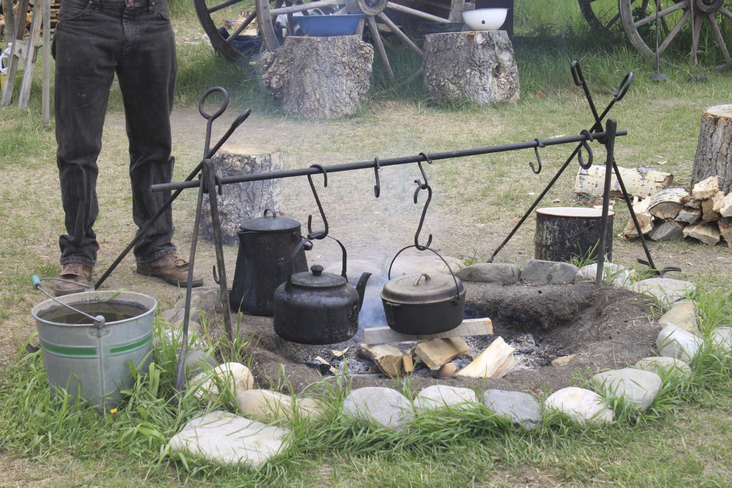 Chuck wagon cooking fire