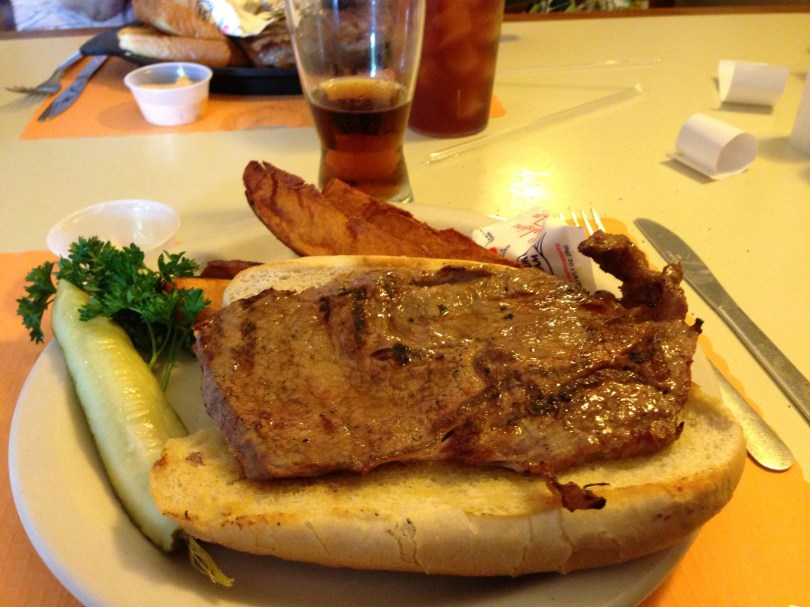 Rib eye sandwich: Wagon Wheel Cafe, Iowa