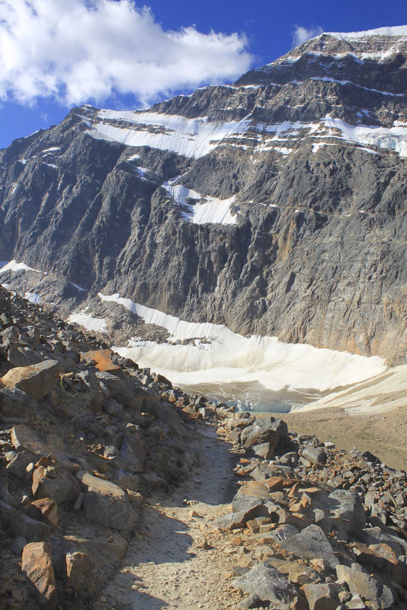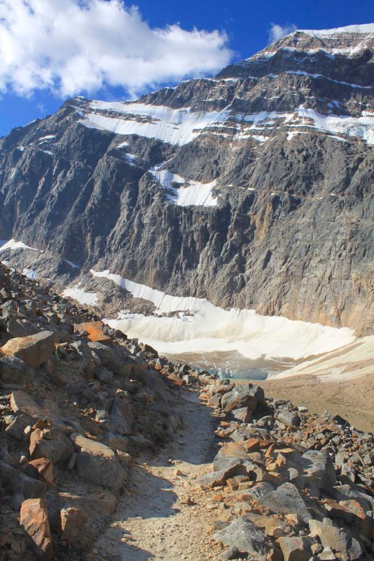 Mt Edith Cavell August 1, 2013 1584 × 2376 Mt Edith Cavell Trail over the moraine to the alpine meadow.