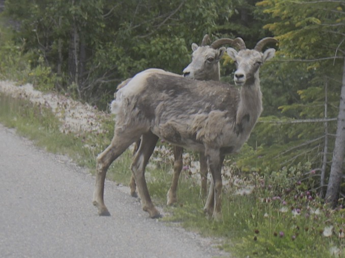 Sheep on the road to Maligne Lake.